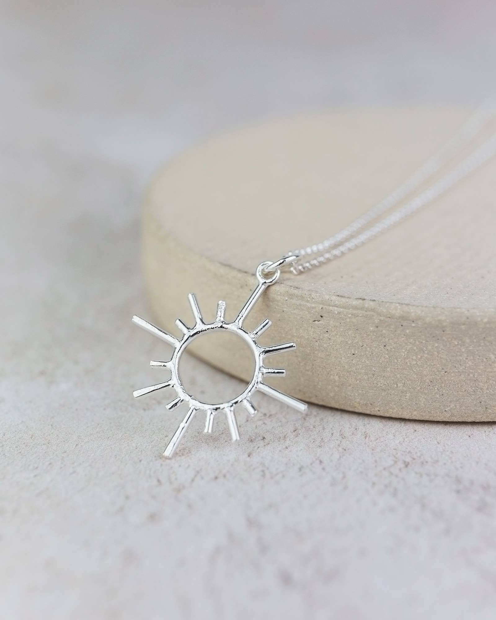 Carry a little radiance with you. This beautifully crafted Sun pendant is handmade in Cornwall using fully recycled, eco-friendly sterling silver. Its contemporary open-sun design catches the light with every movement, offering a subtle yet uplifting reminder of warmth, renewal and the turning of the seasons.